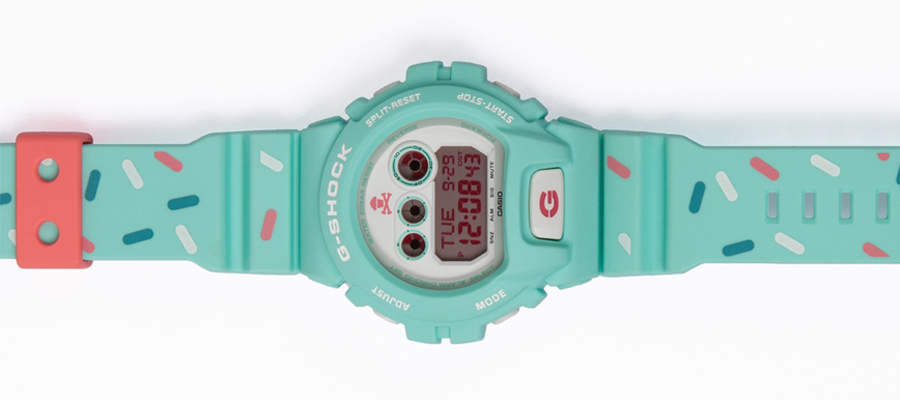 Johny Cupcake แบรนด์เสื้อผ้าชื่อดังที่ถือกำเนิดมาใน 2001 กับผลงานการ Collaboration กับ G-Shock โดยได้เลือกรุ่นยอดฮิต GDX-6900 มาในรหัสโมเดล GDX-6900JC-3 โดยการออกแบบในครั้งนี้มาในสีโทน Pastel สี Aqua พร้อมกับลวดลายของเกล็ดน้ำตาล rainbow sprinkles ที่เราพบได้ในขนม Cupcake ซึ่งก็บ่งบอกถึงตัวแบรนด์ด้วยนั่นเอง รวมถึงกล่องเหล็กและกล่องกระดาษก็ออกแบบมาเฉพาะในลวดลายเดียวกันอีกด้วย ![]()